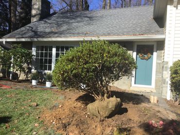 As part of this installation, our designer called to dig and transplant some mature specimen shrubs. Our team started by carefully burlapping each specimen to be moved.