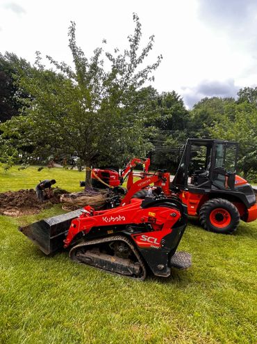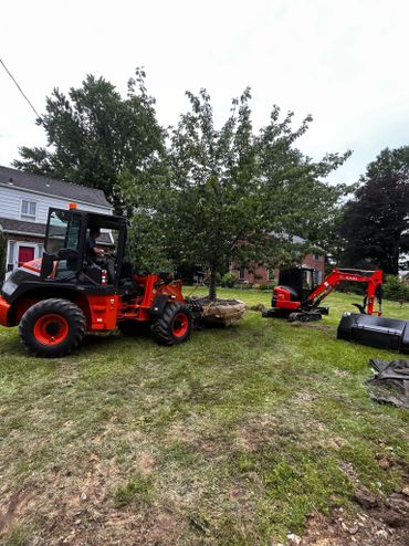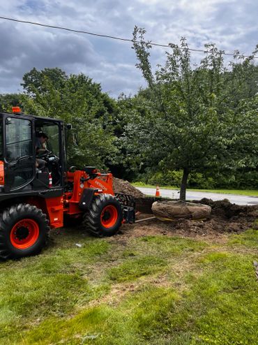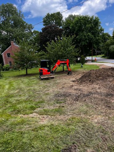 After both of this trees were moved to their new location our team got to work finish grading and reseeding the yard. Once our team was complete, the construction crews were able to continue with the project!