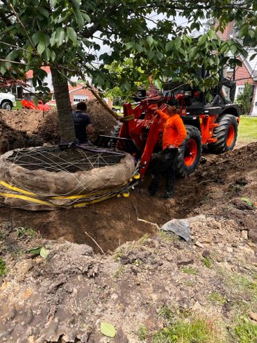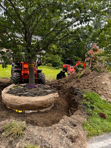 Due to the large size of trees, our only option was to use heavy equipment to dig and relocate them!
