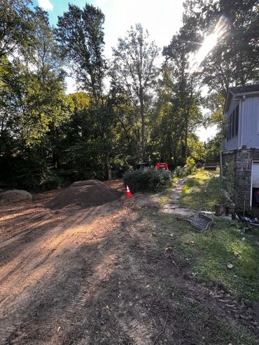 After our client removed 8 mature trees and stumps, we were tasked to install a drainage system as well as regrade and seed the yard to transform this once unusable space!