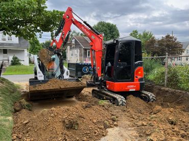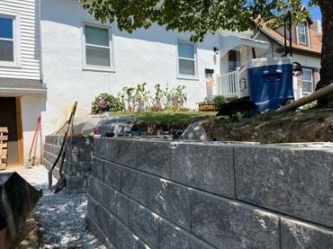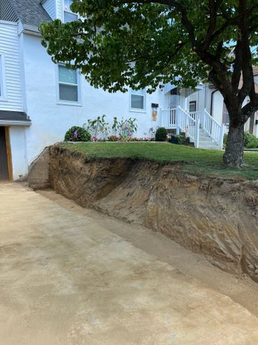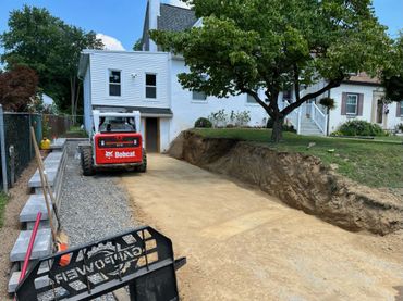 Our team got to work by excavating the existing slope to maximize the usable space in the driveway. Once the team had the area opened up to full width, they began to excavate for the base of the wall.